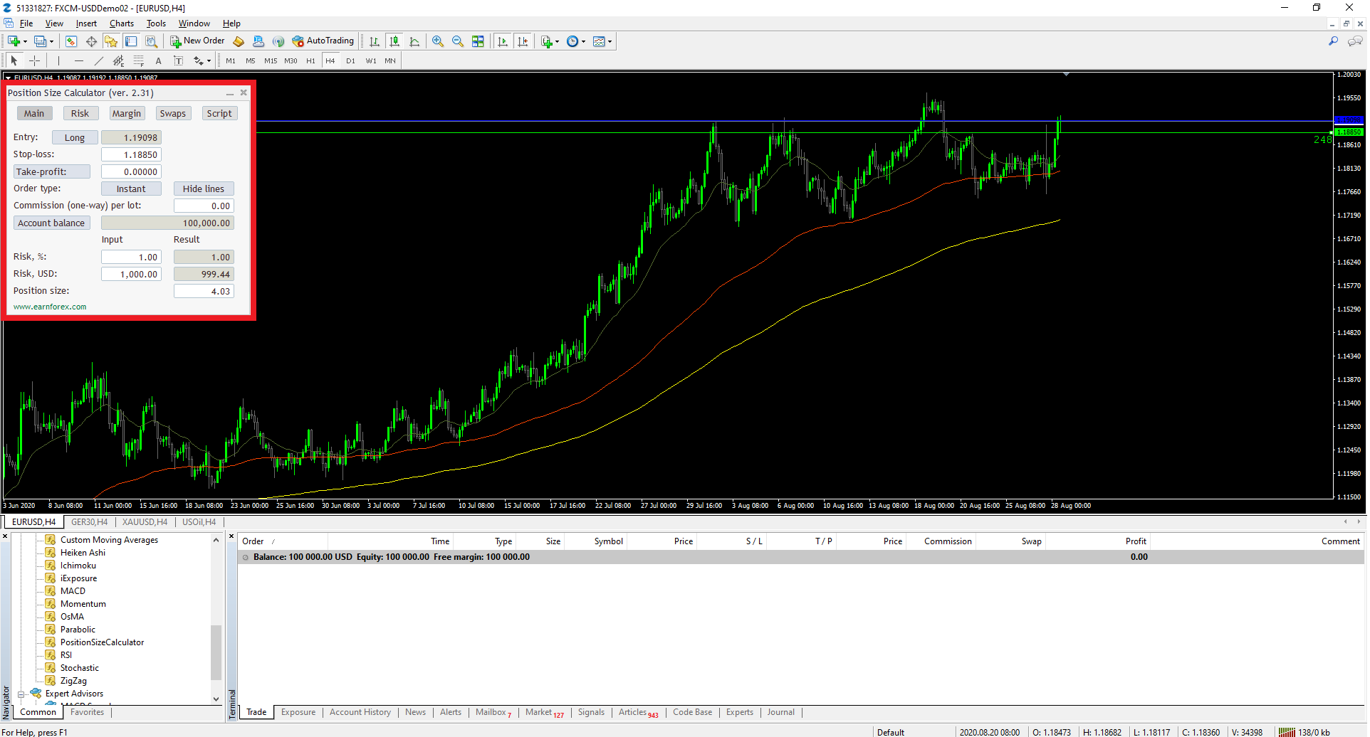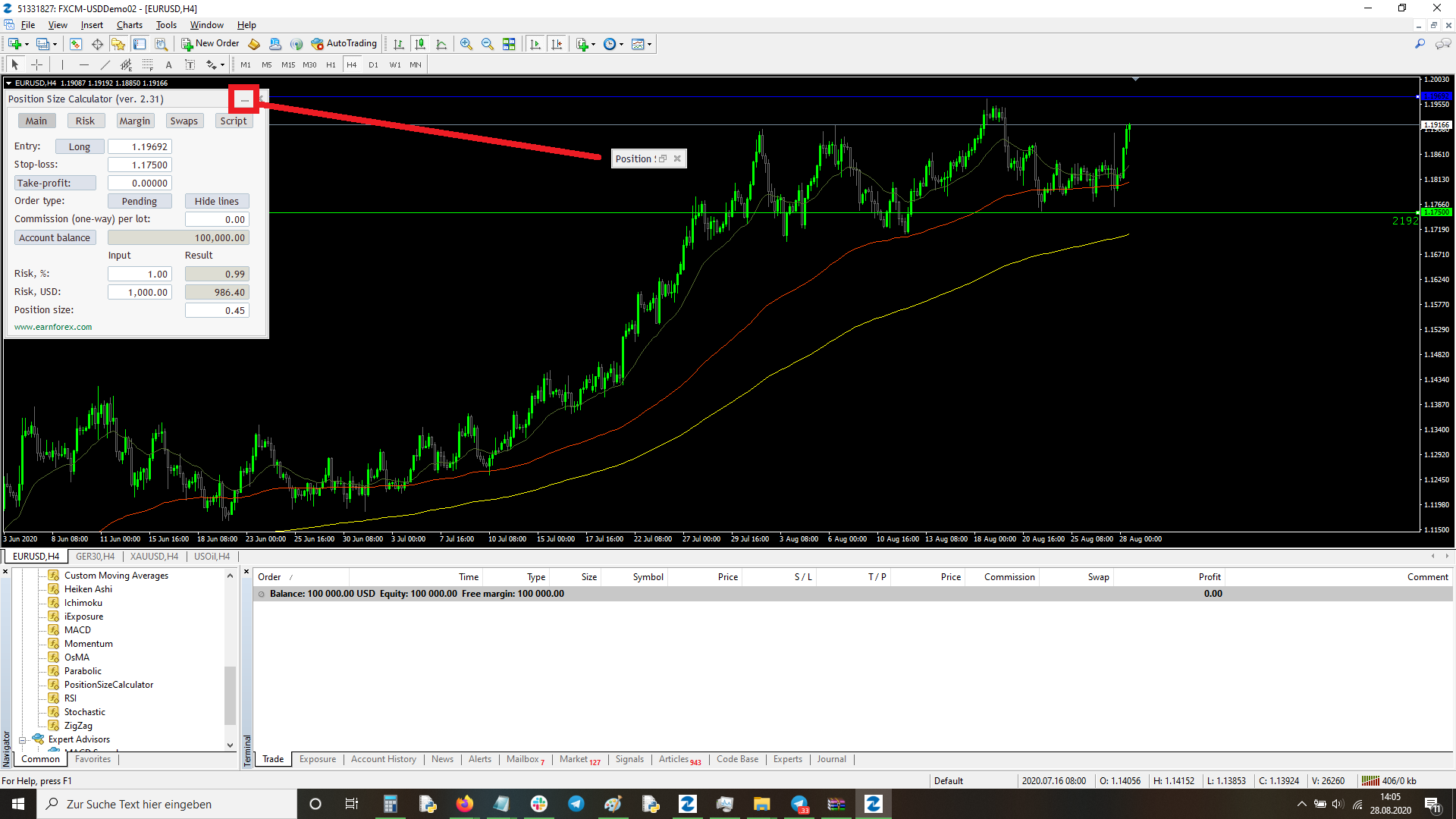 - Open the PositionSizeCalculator which you now have minimized at the top screen.